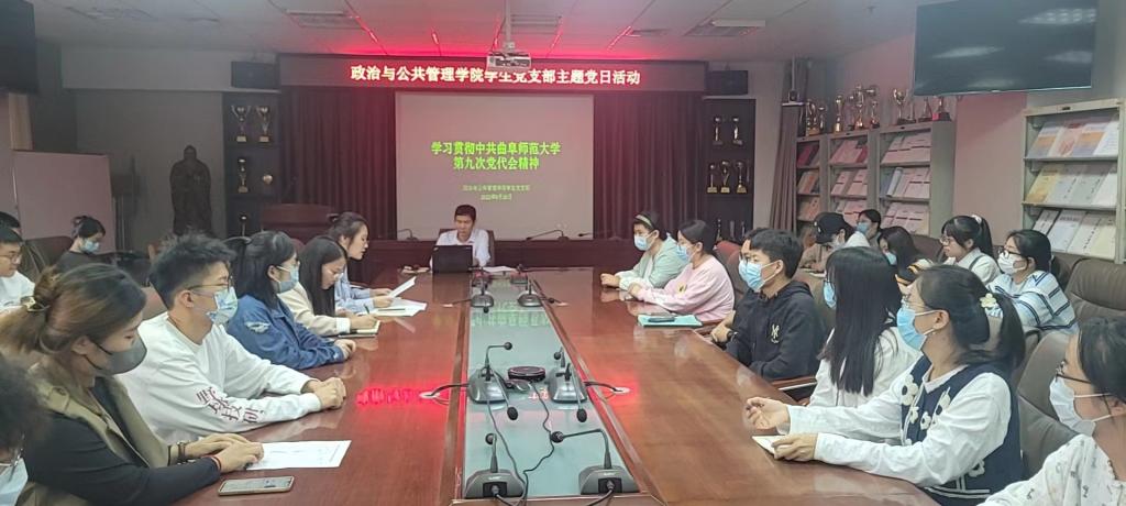 曲阜师大新闻中心讯(通讯员:耿晓敏 摄影:彭倩倩 姜太析 杨宁 倪振华)为深入学习领会学校第九次党代会精神,迅速掀起学习宣传党代会的热潮,把党代会精神系统、全面、准确地传达到广大党员干部和师生员工中去,9月23日至26日,政治与公共管理学院党委、各党支部、团委、学生会、班团组织通过专题学习会、主题党日活动、宣讲会、团日活动等形式对党代会精神进行深入学习。