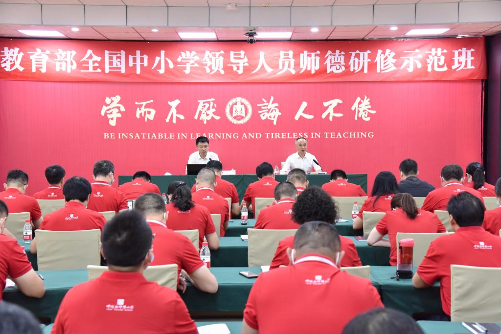 陈武以《坚持师德第一标准,加强师德师风建设,打造“经师”和“人师”的统一者》为题,围绕新时代教师思想政治和师德师风建设工作的战略要义、中小学教师思想政治和师德师风建设工作成效,以及中小学教师思想政治和师德师风建设有关问题等方面,分析了当前我国教师队建设取得的成绩,阐述了加强师德师风教育和师德师风建设的重要性。陈武希望研修班学员珍惜学习机会,全身心投入到研修班的教学和实践中,在真学真信中坚定理想信念,不忘为党育人,为国育才初心;通过学习不断提升教师思想政治和师德师风建设水平,自觉坚守德高为师,行为师范操守,勇担改革创新、攻坚克难使命,让更多教师成为“经师”和“人师”的统一者,做学生为学、为事、为人的大先生,助力教育事业高质量发展。