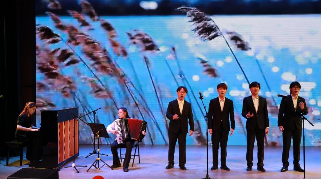 晚会在学院电声乐队带来的《启程》《你要跳舞吗》中拉开了序幕,带着对日月广场、知音湖的眷恋,把爱留在曲师大,带着梦想奔赴远方;爵士舞蹈、萨克斯四重奏《春之声》、男声九重唱《青春舞曲》《库斯科邮车》,用青春的朝气点燃激情的火焰,预示着毕业生们也将迎接一个崭新的春天,奏响曲园的骊歌。
