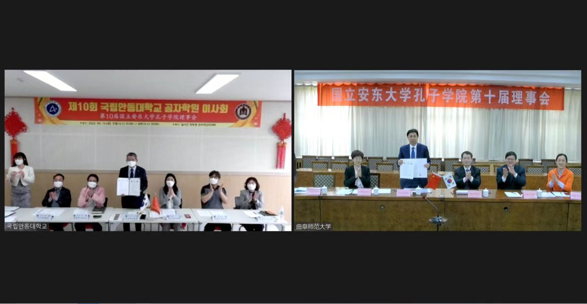 曲阜师大新闻中心讯 5月13日,XK在线与韩国国立安东大学以视频方式召开了国立安东大学孔子学院第十届理事会。曲阜师大校长张洪海,国立安东大学校长权纯泰出席会议,安东孔院韩方院长金炳圭、中方院长王秀卿以及中外方理事会成员、孔子学院相关工作人员参加了会议。