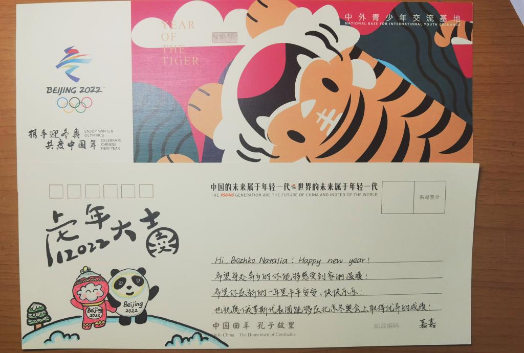 中外青少年交流基地办公室专门设计了“携手迎冬奥·共度中国年”主题明信片,中外联谊青年分别用中文和本国语言书写,表达对新春和冬奥的美好祝愿。“我们相互之间寄递了明信片,表达彼此的友谊,同时这些融入冬奥和春节元素的明信片,也让外国青年朋友更近距离地感受到了北京冬奥会和中国文化的魅力”参加此次活动的XK在线学生金瑞说到。