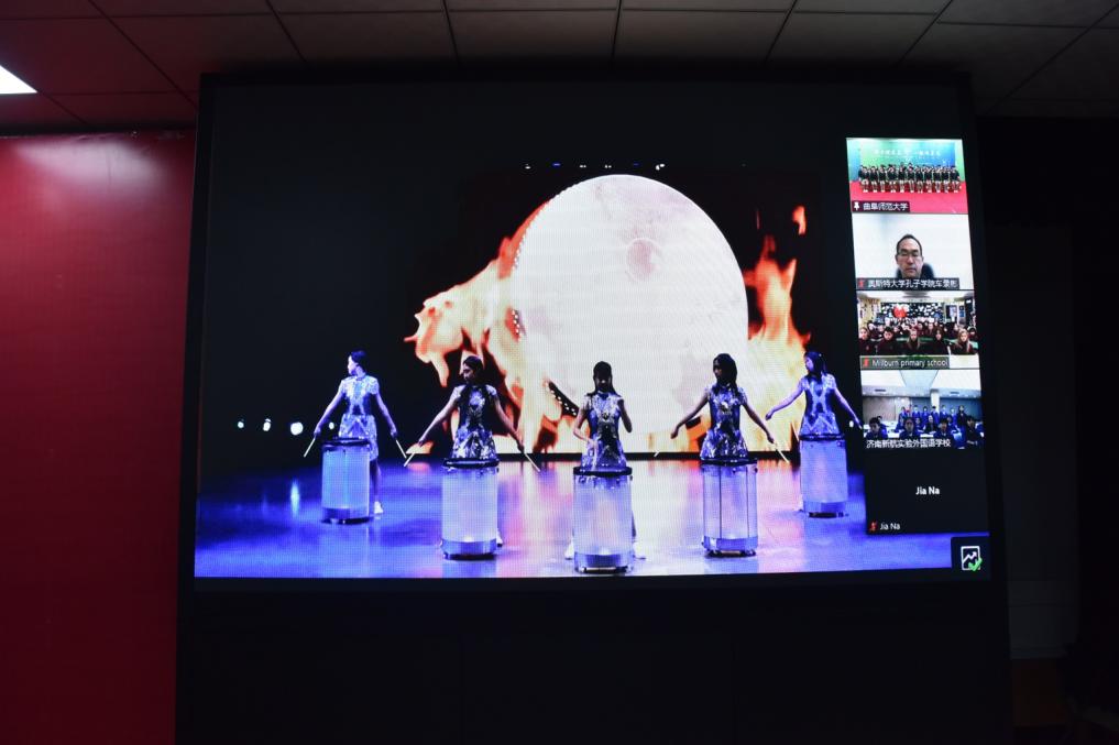 “新年快乐、happy mew year……”活动最后,英国米尔本小学、济南新航外国语学校、XK在线附小的同学依次送上新年真诚祝福。福字、灯笼、中国结、饺子、剪纸、孔府糕点、诗礼银杏等中国元素扮靓了会场,曲阜师大附小的同学最后展示了专门为英国小学生签名的虎年迎冬奥主题明信片,为交流画上圆满句号。