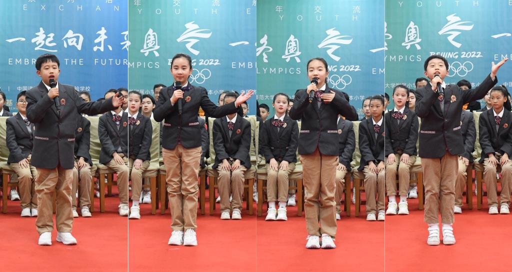 “我心中的冬奥会是中国文化的展示,享受中国的美食,感受中国的礼仪,展现中国发展体育造福世界的决心,北京冬奥会一定会成为运动员的福地”“我心中的冬奥会是友谊的盛会,世界各国会感受到中国的热情好客,处处都是友好的笑脸,各国运动员会成为好朋友”……曲阜师大附小的四名同学,分别以文化使者、友谊使者、科技使者、拼搏使者的身份,讲述了心中期待的冬奥会。