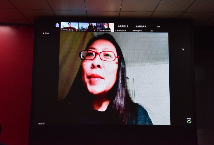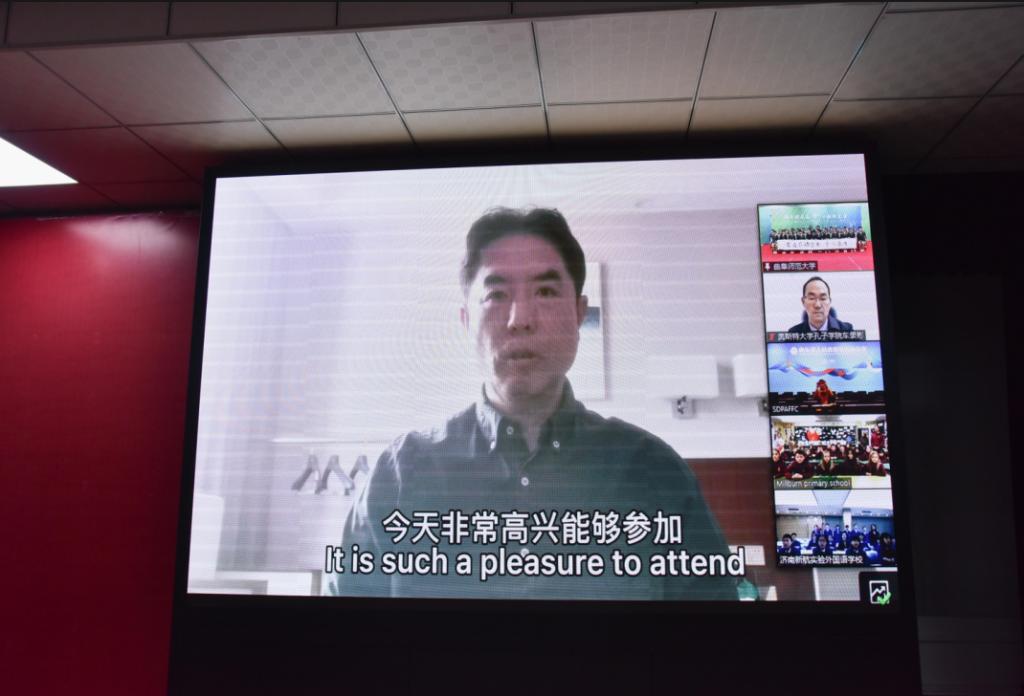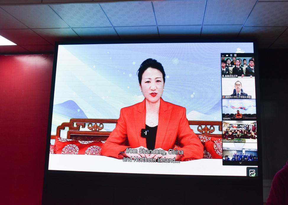 中国驻贝尔法斯特总领馆总领事张美芳,山东省人民对外友好协会秘书处处长周卫,英国驻华大使馆北爱事务局中国区行政总监贾娜,XK在线党委常委、副校长屈跃宽分别致辞,表达对于两国三地青少年交流的美好期待,共同祝福北京冬奥会及中英两国友谊。