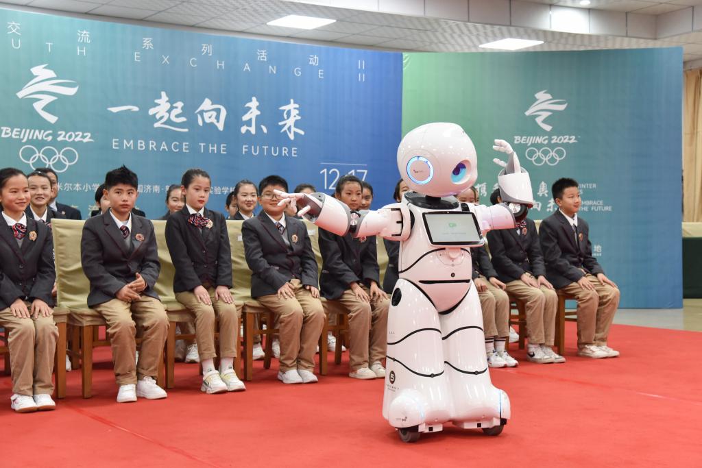 中外青少年交流基地志愿者“化身”北京冬奥会吉祥物冰墩墩、雪融融亮相,带领大家一起观看了北京冬奥会官方宣传视频,充满科技元素的智能机器人也发出邀请、表演了动感舞蹈,让现场充满浓厚的迎冬奥氛围。