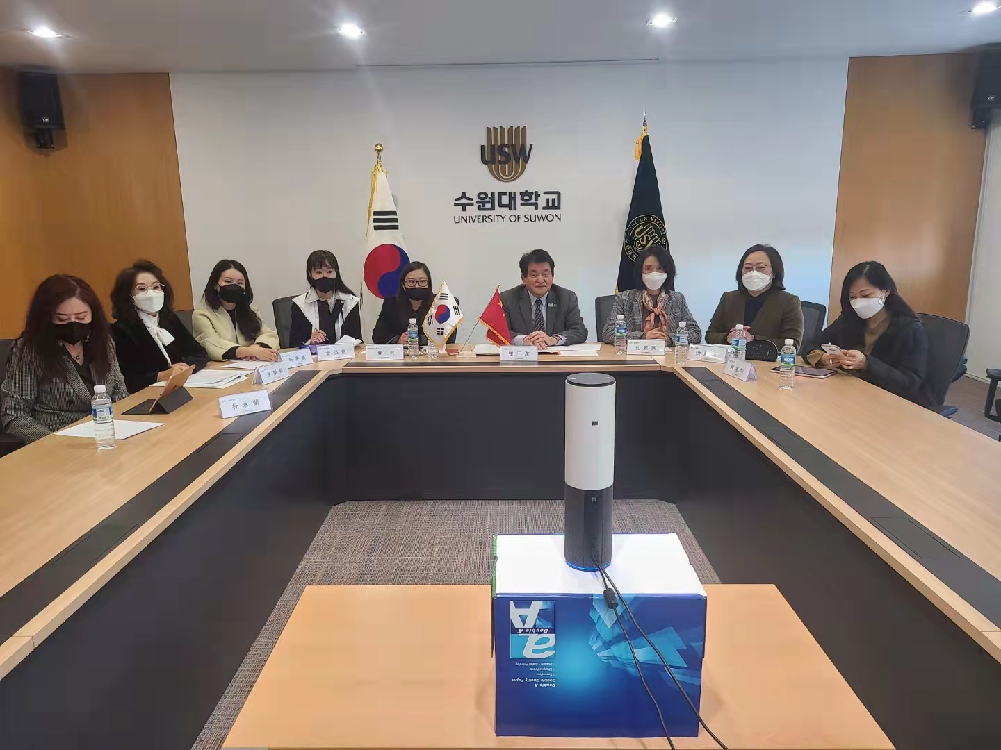 崔广洙介绍了水原大学的办学历史、学科建设、国际化办学等情况,赞扬了两校对合作办学项目的高度重视,表示会与中方一道,继续采取务实举措,努力实现合作办学项目的互惠共赢。洪周希重点介绍了水原大学音乐学院的发展现状、师资力量和人才培养情况,表示将继续为本项目选派高水平师资,与我校齐心协力培养合格的国际化艺术人才。