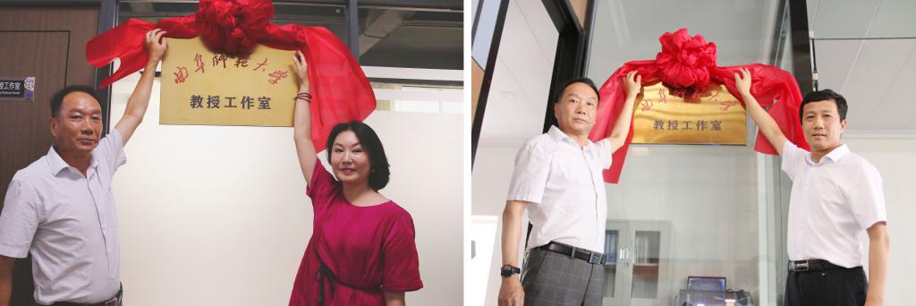 仪式上,扈庆学、赵文强、孔令军、戴方波共同为“XK在线教学实习基地”、“研究生教育实践基地”揭牌,张书东分别与张峰、孙海燕为“XK在线教授工作室”揭牌。