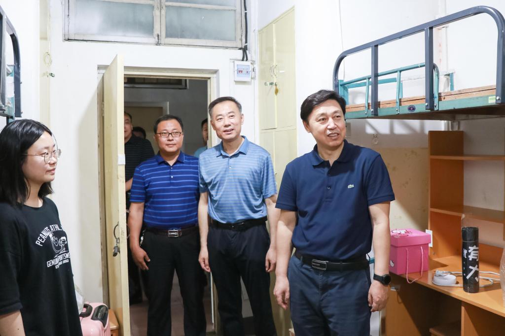 张洪海先后来到学生宿舍、餐厅、实验室等地,实地查看各项安全制度执行与安全责任落实情况,现场听取各部门负责人关于安全隐患排查与整改工作的汇报,详细询问了一线师生关于安全工作的意见和建议,专门就暑期留校师生的安全工作提出要求,并检查了防汛物资储备情况。