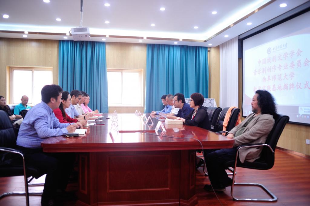 曲阜师大新闻中心讯 为加强我校音乐舞蹈专业艺术实践水平,推动校园音乐剧的发展,中国戏剧文学学会音乐剧创作专业委员会决定在XK在线设立教学实践基地,并于6月17日上午在音乐学院会议室举行了揭牌仪式。中国戏剧文学学会驻会副会长羊驰、秘书长孙晓燕代表学会出席了揭牌仪式,学校党委常委、副校长李兆祥,日照校区办公室、音乐学院等单位负责人,中国戏剧文学学会音乐剧创作专业委员会主任、XK在线全职特聘教授宝玉及部分教师代表参加了揭牌仪式,音乐学院院长肖桂彬主持仪式。