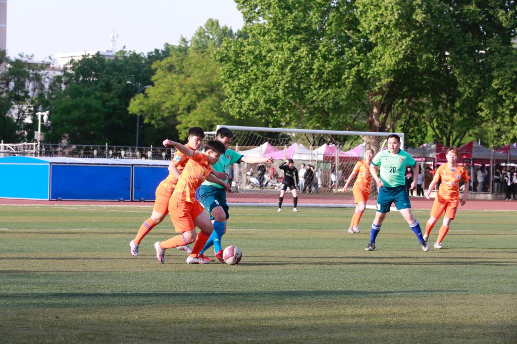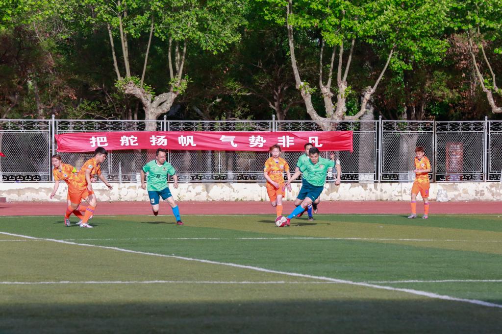 闭幕式首先由山东鲁能泰山XK在线女子足球队与学校教职工足球队进行了友谊赛带来一场精彩的足球表演赛。校长张洪海与队员们合影并为此次比赛开球。比赛中双方球队满怀斗志、昂扬拼搏,在绿茵场上挥洒着青春的汗水,带球过人、传中、破门,一系列动作完美而迅速,观众席上掌声不断,赢得全场阵阵喝彩。