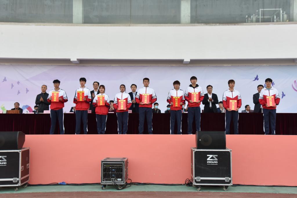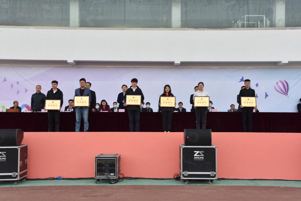 在热烈的掌声中,学校领导为获奖单位和个人颁发了奖杯及获奖证书。