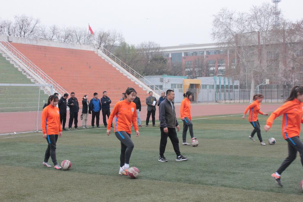 体育科学学院院长曹莉教授从学院和运动队简介、运动队管理、教练员队伍建设、条件保障、教学训练效果以及下一步计划等方面进行了详细的汇报。复核访谈专家组就组织领导、队伍建设与管理、培养质量与教育教学效果、我国高水平足球队发展意见建议等问题与到会人员进行了深度访谈交流。