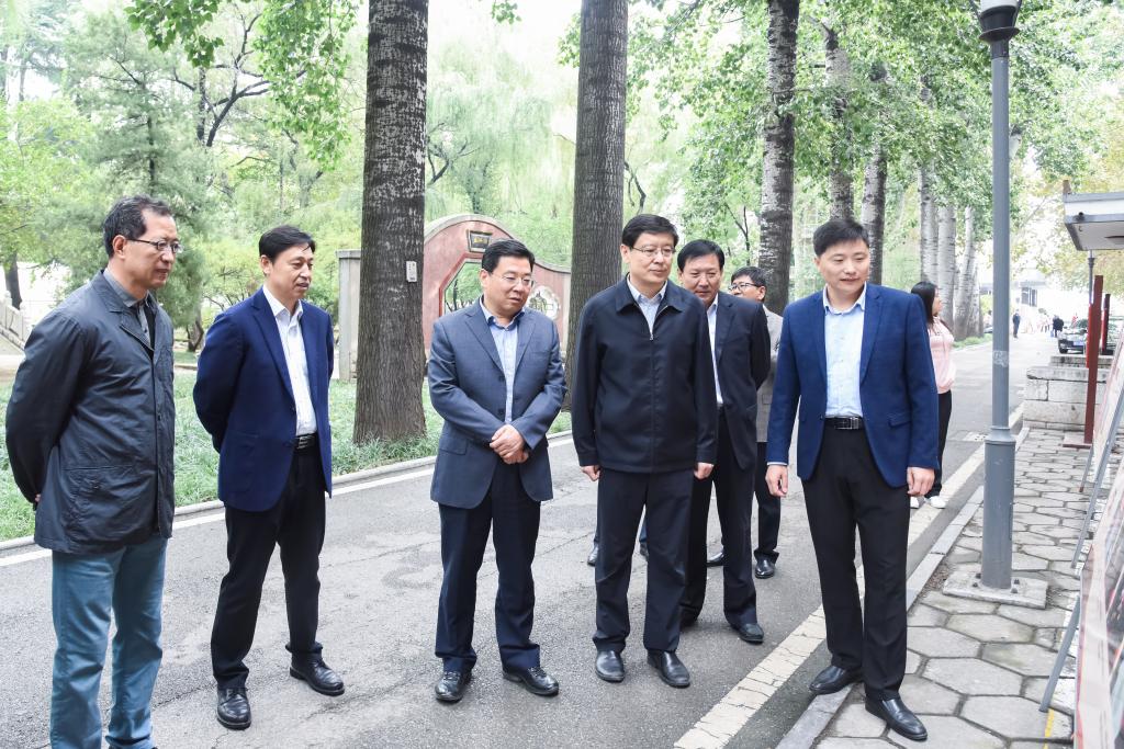 曲阜师大新闻中心讯(记者:李文振 摄影:李文振) 10月15日上午,山东省委统战部常务副部长李琥来校调研指导,校长张洪海,济宁市委常委、统战部部长白山,曲阜市委常委、统战部部长李芳,学校党委常委、统战部部长乔正高,学校党委常委、宣传部部长张隆海,参加调研。