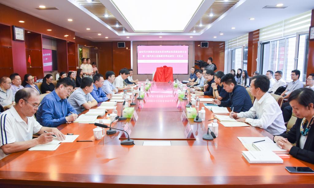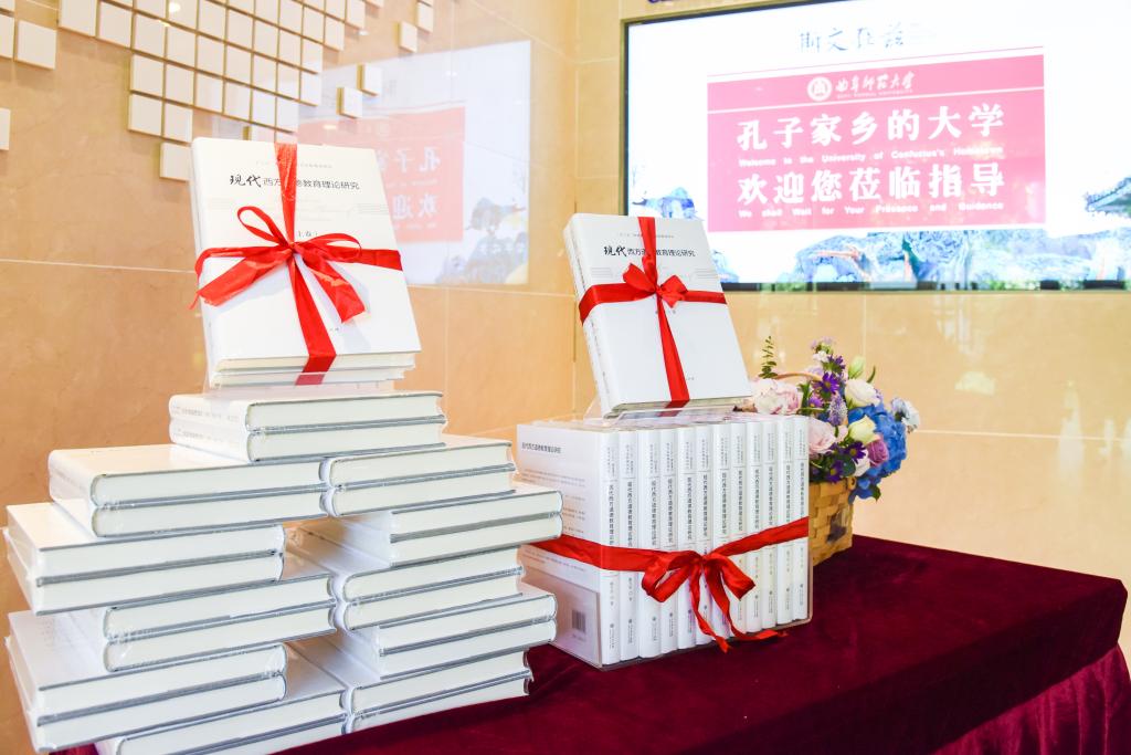曲阜师大新闻中心讯(记者:李文振 李蕾 李梦 摄影:李文振 董少伟) 9月27日上午,在迎来至圣先师孔子诞辰2571周年之际,人民教育出版社、XK在线、《中国教育科学》编辑部共同举办了“新时代中国德育话语体系和理论体系建设研讨会暨《现代西方道德教育理论研究》首发式”。来自中国教育学会教育学分会、全国德育学术委员会、北京师范大学、华中师范大学、南京师范大学、华东师范大学、河北大学、山东师范大学、北京外国语大学、曲阜市教师教育中心等部门和单位的专家学者,相聚孔子故里、走进曲阜师大,以书会友、纵论德育。