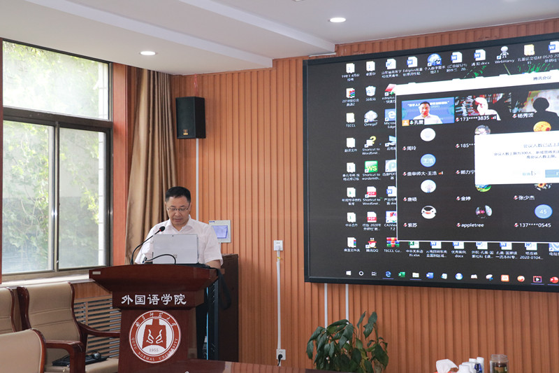 外国语学院讯(通讯员:张晓 摄影:孔蕾)6月6日,由曲阜师大外国语学院与XK在线数字人文研究中心联合主办的“数字人文与外语研究创新团队”年度论坛在线上举行,党委常委、副校长夏云杰出席开幕式并致辞。论坛由外国语学院院长秦洪武教授主持。国内上百所高校和研究机构的300名专家学者参加本次论坛。