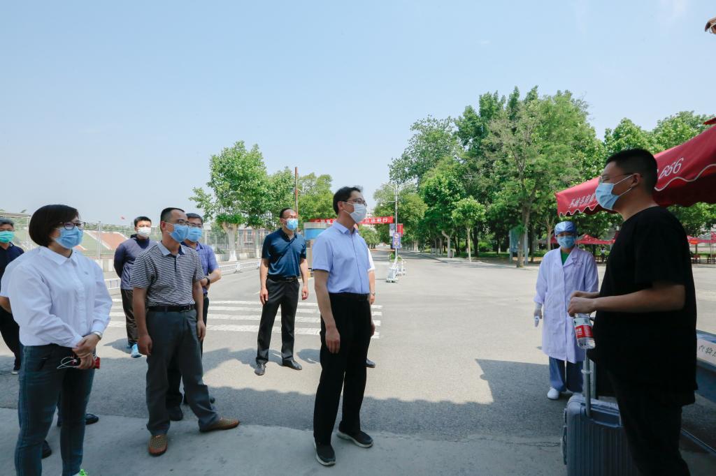 “欢迎回来!”“一路上都顺利吗?”“有问题随时向老师们讲。”……23日上午,学校党委书记戚万学、校长张洪海、副校长夏云杰、纪委书记徐思生,来到学校南门看望慰问返校学子,并检查指导各项入校报到工作。