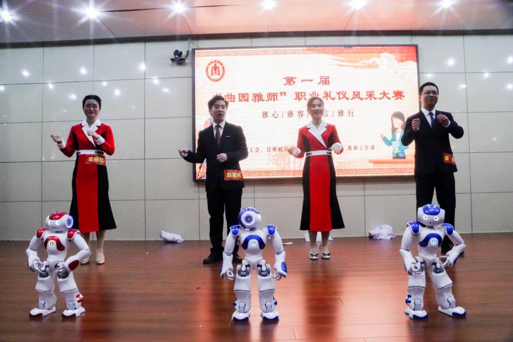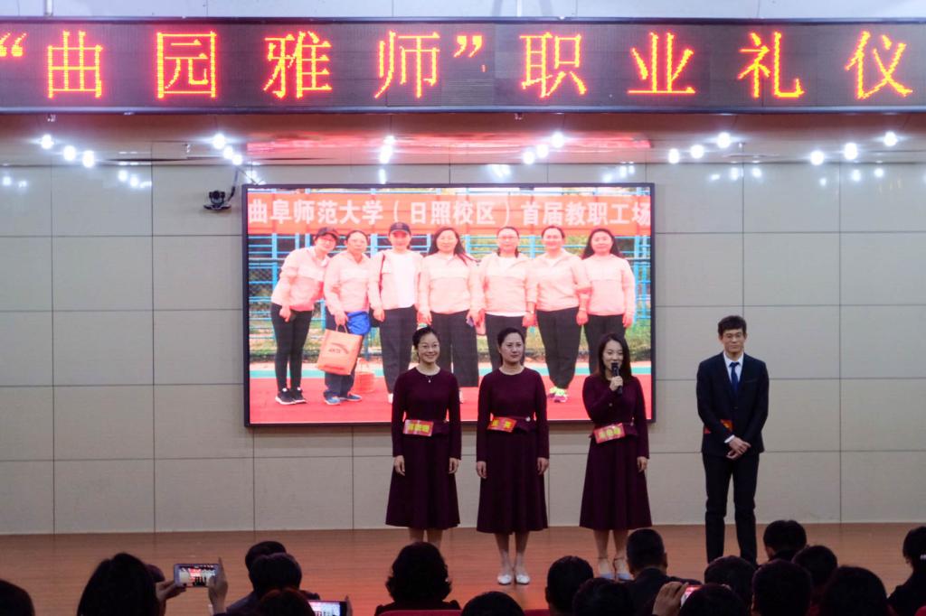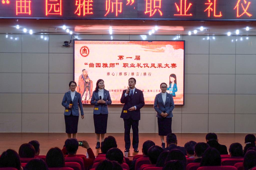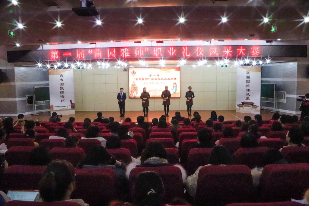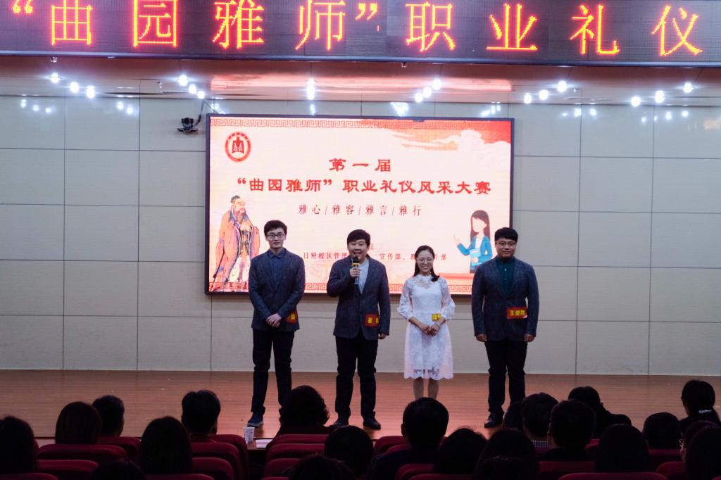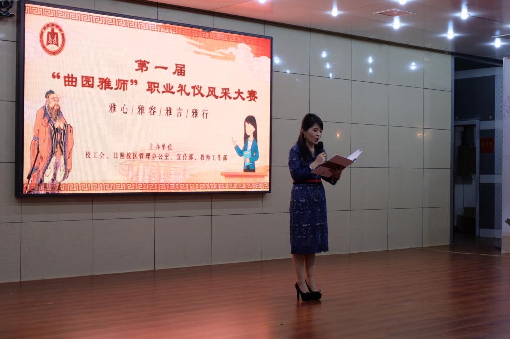 展曲园雅师风采,育大国良师情怀。12月19日晚,我校举办首届“曲园雅师”职业礼仪风采大赛,本次大赛由学校工会、日照校区管理办公室、宣传部、教师工作部联合举办,日照校区13支优秀青年教师队伍同台竞技。学校党委副书记扈庆学出席活动,山东水利职业学院党委委员、工会主席颜秀霞,我校日照校区管理办公室、宣传部、工会、各学院负责人参加了活动。本次比赛邀请音乐学院党委书记胡长春、政治与公共管理学院教授段文阁、文学院教授李敏红做点评嘉宾。本次活动由文学院袁梅老师策划并主持。