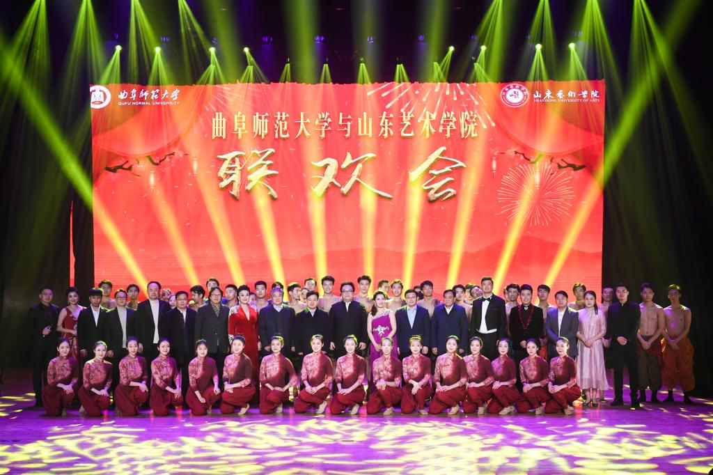 12月7日,我校与山东艺术学院联合举办的“七十春秋谱华章,携手前行铸辉煌”联欢晚会在大学生活动中心精彩上演。出席晚会的领导嘉宾有:山东省教育厅体卫艺术处处长孙乐为、山东艺术学院党委书记马东骅、院长王力克,我校领导戚万学、冯冲、胡钦晓。千余名师生在欢歌笑语中共享此次视听盛宴。