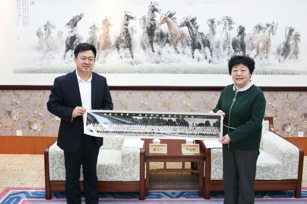 座谈会后,戚万学、夏云杰一行参观了山东大学校史馆和博物馆,考察团各职能部门与山东大学相关部门进行了对口交流。
