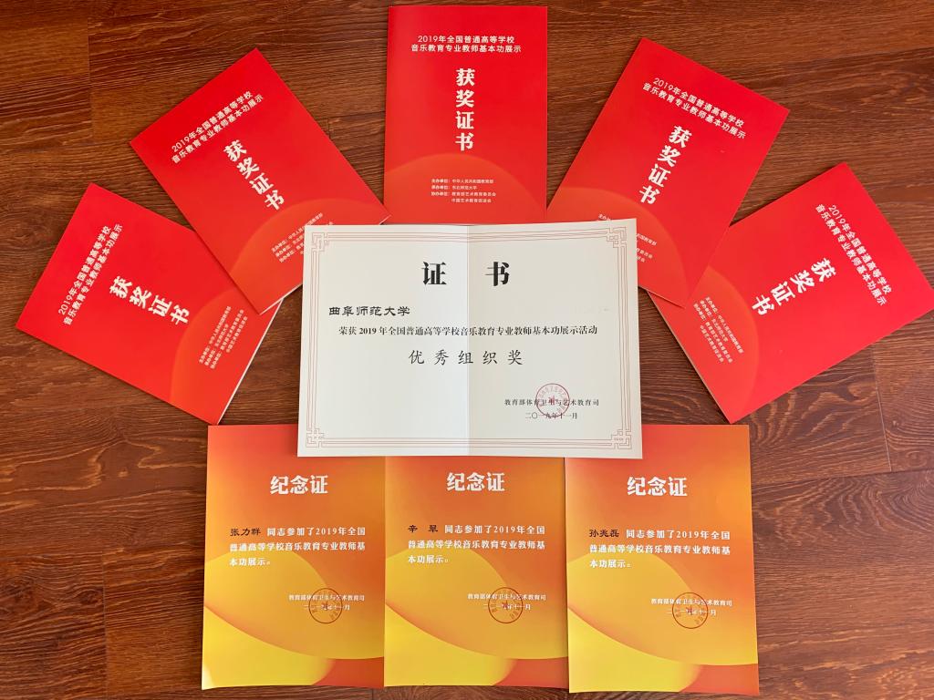 11月11日至15日,由教育部举办的2019年全国普通高校音乐教育专业基本功展示在东北师范大学举行,我校音乐学院辛翠老师荣获教法组全能一等奖、教学展示单项奖、专业展示单项奖,张力群老师获得技能组个人全能三等奖、教学展示单项奖,我校获得优秀组织奖。