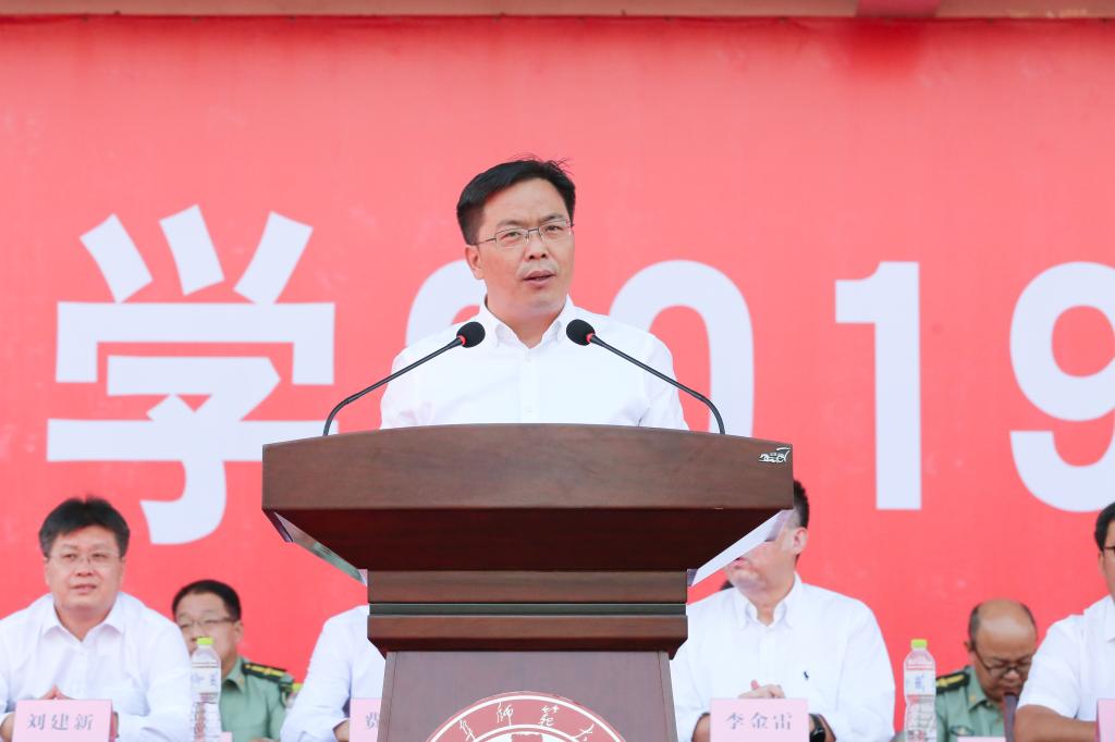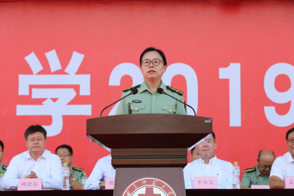 副校长胡钦晓在会上讲话,代表军训旅向全体参训同学们表示热烈祝贺,向全体承训的部队官兵和国旗护卫队的队员表示衷心感谢,向为军训提供保障服务的教职员工表示亲切慰问。胡钦晓指出,军训是同学们步入大学的第一课,大家通过军训感受军威、锤炼身心、熔铸理想,既强健了体魄,又显著提高了自我教育、自我管理、自我服务的能力;军训还是一次深刻的国防教育和爱国主义教育,丰富了大家的国防知识,增强了国防观念,激发了爱国主义热情,培养深化了集体主义和革命英雄主义精神。胡钦晓强调,作为新时代青年学子,同学们要继承革命先辈的优良传统,将军训中激发出的爱国热忱转化为报国之行,做一名有爱国心、强国梦、报国志的曲园学子,以昂扬的斗志、饱满的热情、奋进的姿态,踢好人生的正步,争做堪当复兴大任的时代新人!