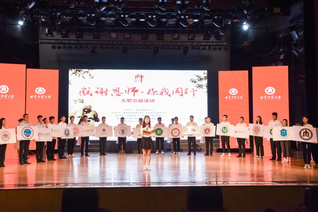我校学生会主席丁雅琼同学宣读2019“感谢恩师·你我同行”大型公益活动倡议书,倡议大学生们踊跃加入到“感谢恩师·你我同行”大型公益活动的队伍中来,报名成为感恩大使,承担起传承中华民族尊师重教传统美德的重任,并将感恩情怀传递给全社会更多的人。