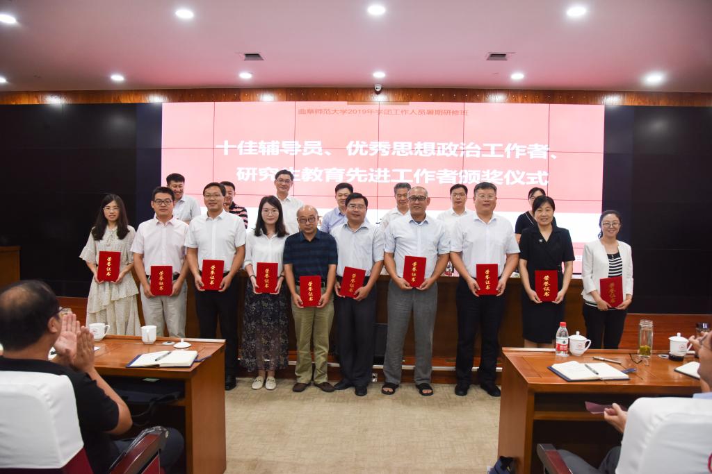 研修班上,夏云杰宣读了我校2018年度十佳辅导员、优秀思想政治工作者、研究生教育先进工作者获奖名单。