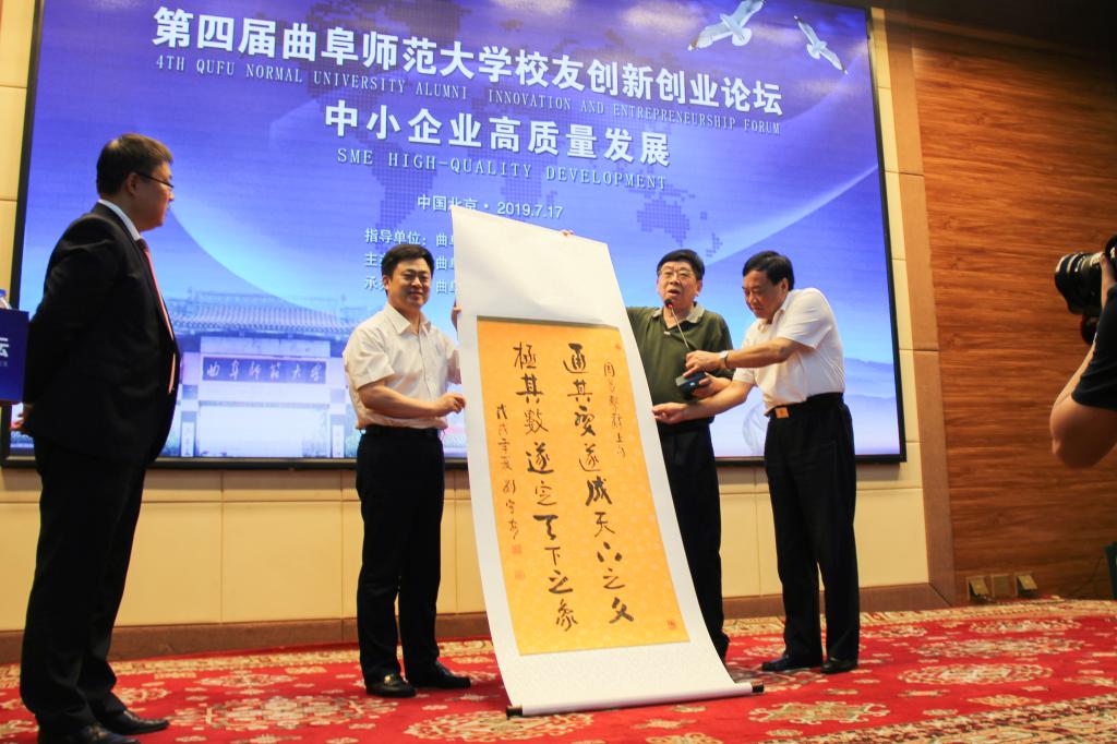 优秀校友、北京校友会会长刘守安教授向母校赠送了书法作品,表达了对母校深深的眷恋和祝福!创盟理事长刘德明、北京校友会常务副会长汪洪田分别致辞,对母校领导和各位校友的到来表示热烈的欢迎,对母校的培养和关心表示衷心的感谢,对今后创盟的工作内容和计划做了阐释。