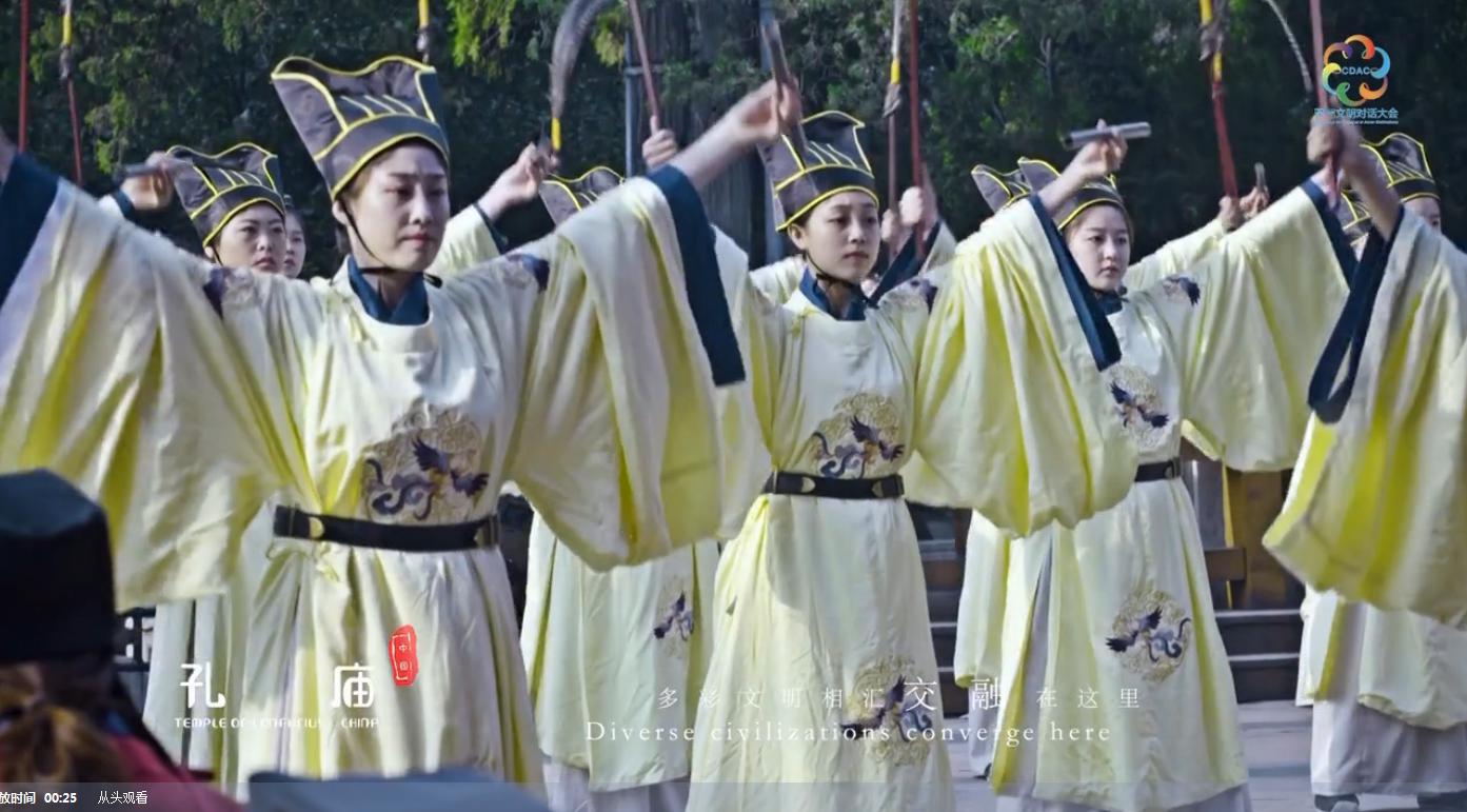 主题音乐短片的歌词、画面涵盖亚洲各国传统文化要素。在最引人注目的中国元素中,中国书法、北京故宫、曲阜孔庙等成为体现中华优秀传统文化的标志性元素。其中,我校雅乐团师生在孔庙大成殿前展演的雅乐舞镜头,被收录进该主题音乐短片。这是自2018年1月我校雅乐团展演入选国家形象宣传短片《感知中国新时代》,并在纽约时报广场大屏幕滚动播出后,又一次入选国际性主题宣传片。