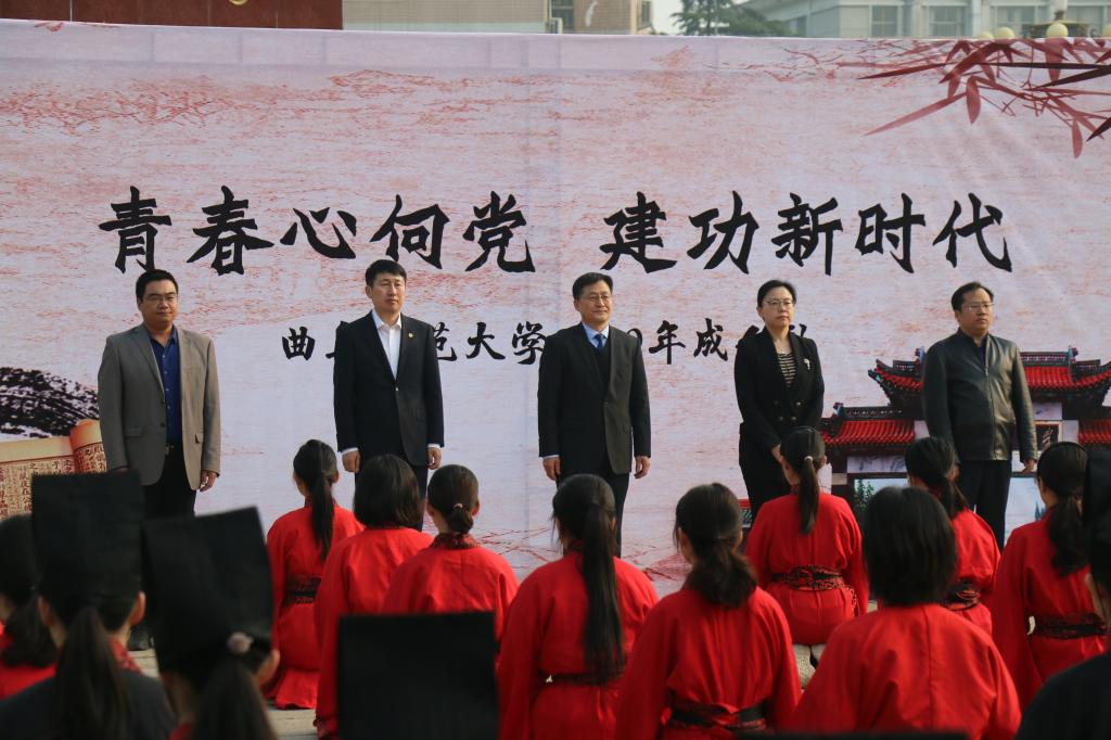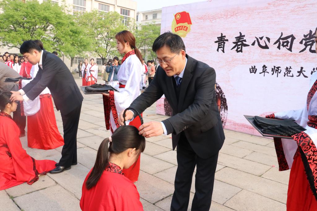 7时整,伴随着悠远的琴乐,五四成人礼在孔子文化广场举行。党委宣传部、学生工作处、教务处、校团委、历史文化学院负责人参加了此次活动。青年学子在鸣赞者的指引下面谒至圣先师孔子,行三次揖礼,表达了他们学而不厌、求学报国的决心。