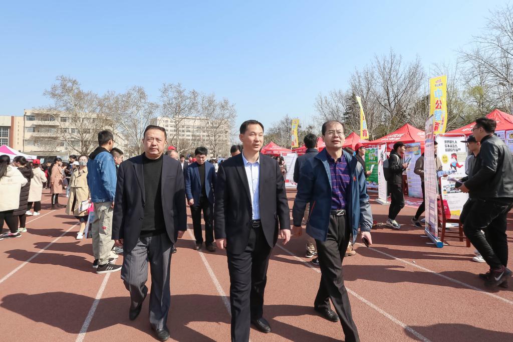 副校长辛杰深入活动现场视察指导,听取了学生工作处负责人关于此次供需见面会组织开展情况的汇报,并与来自济宁、烟台、日照、德州等地区的部分教体局和学校有关负责人进行了深入交流。