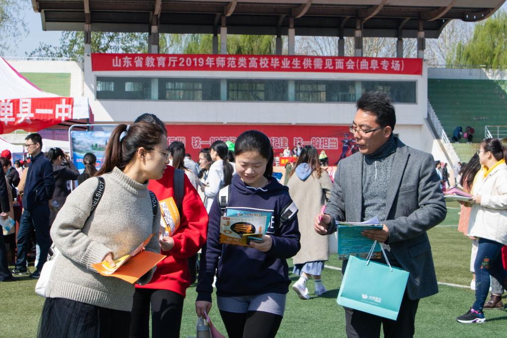 助力就业季,共圆教师梦。3月23日上午,山东省教育厅2019年师范类高校毕业生供需见面会在我校举行,本次供需见面会由山东省教育厅主办、我校承办,吸引到近400家教育行业的用人单位前来招贤纳才,其中包括12家教育和体育局、100余所公办学校,提供就业岗位约1.5万个。