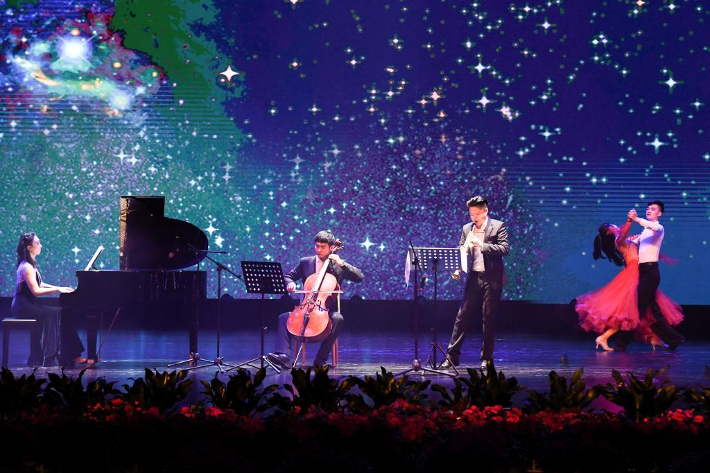 晚会由我校音乐学院百余名师生倾力打造,分为盛世欢歌、家园•寻梦、征程•筑梦三个篇章。一曲《美丽家园》,唱出了齐心协力共建幸福家园的奋进之歌;歌曲联唱《初心》,饱含着对祖国母亲的无限热爱之情;情景歌舞《时间都去哪了》,生动诠释了至纯至美的人间亲情,彰显了忠于使命、坚守岗位、舍小家为大家的大爱情怀,令现场观众潸然泪下;群舞《奔腾》,大气磅礴、催人奋进,体现了万众一心、追梦筑梦伟大征程上的无限豪迈;晚会在一曲慷慨激昂的《我们的新时代》中完美落幕。