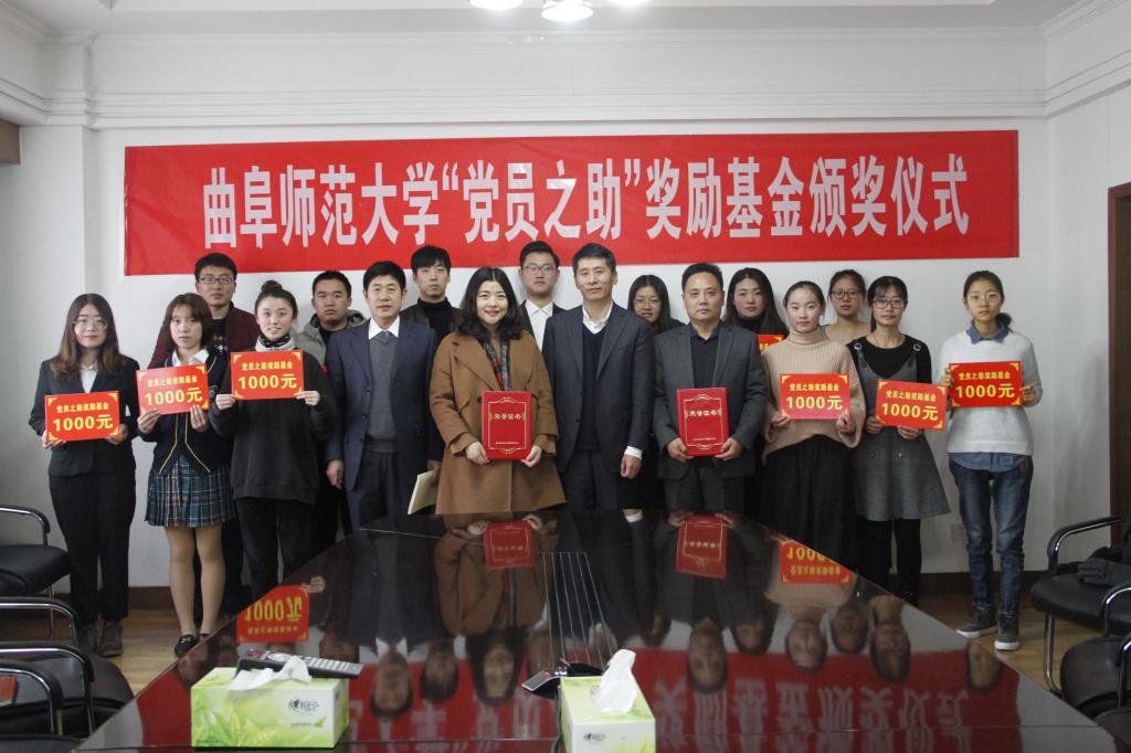 12月12日下午,我校举行2018年度“党员之助”奖励基金颁奖仪式,孔子教育基金会理事长、副校长冯冲,我校优秀校友、“党员之助”奖励基金设立者、山东乾珑网络科技有限公司董事长高方,出席颁奖仪式。学校国内合作处、日照校区管理办公室、党委组织部、党委宣传部、学生工作处、研究生处等相关部门负责人,以及获奖师生代表参加仪式。仪式由国内合作处处长、孔子教育基金会秘书长孔宪福主持。
