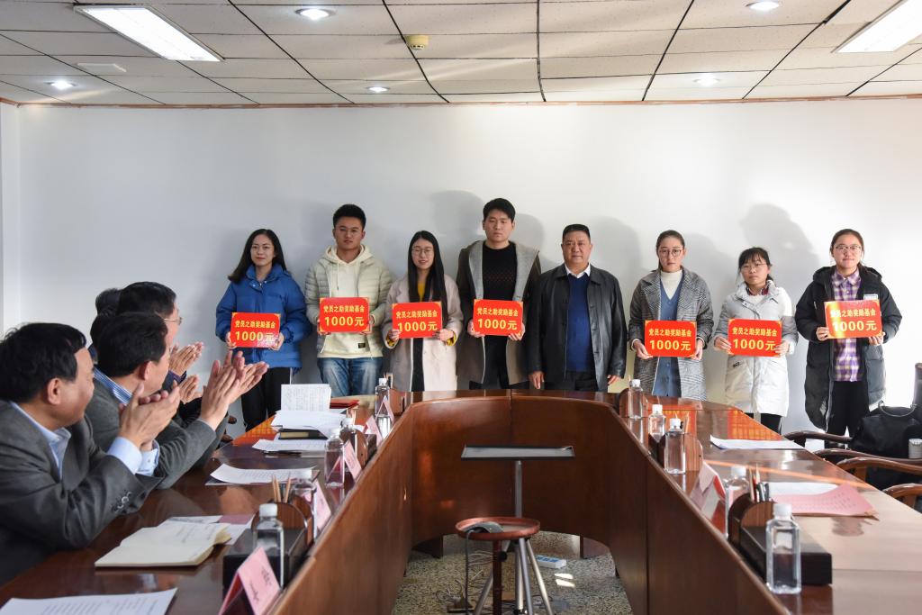 仪式宣布了2018年度“党员之助”奖励基金获奖名单,冯冲、高方为获奖师生颁奖。物理工程学院张英杰教授、统计学院韩潇同学分别代表获奖师生发言。