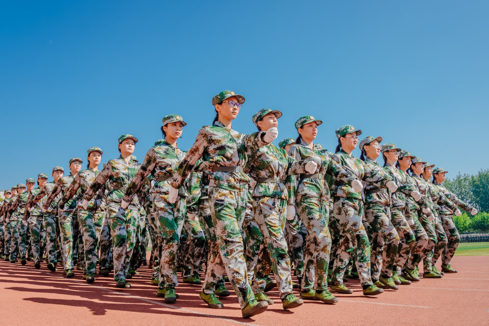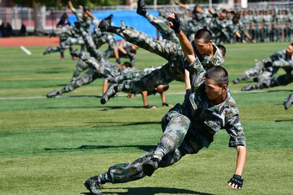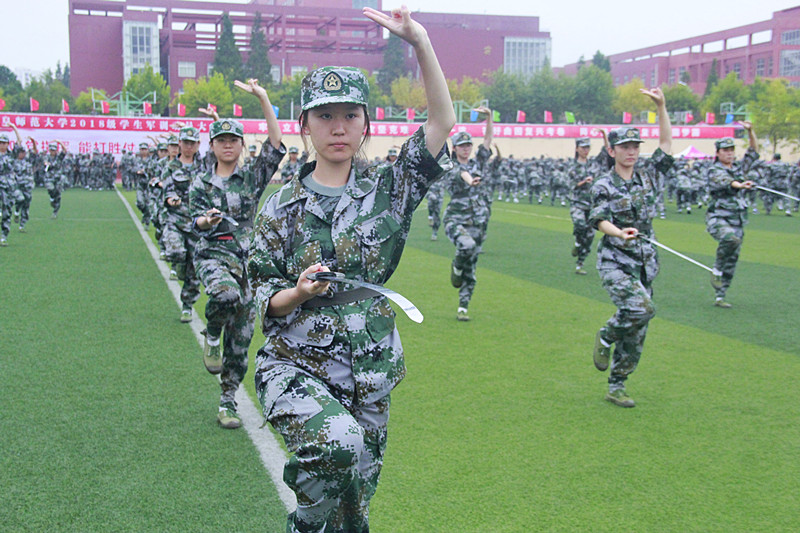 立正、跨立、稍息、停止间转法、齐步,这是军训标配! (郭维勇 摄)