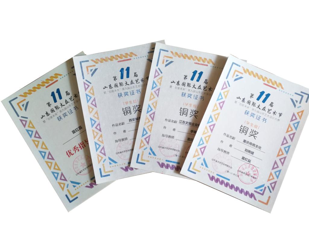 近日,我校美术学院学子在第11届山东国际大众艺术节暨“创意未来”第九届山东艺术设计大赛中表现突出,荣获3项金奖、5项银奖、3项铜奖,学院老师同时荣获优秀指导教师奖1项。