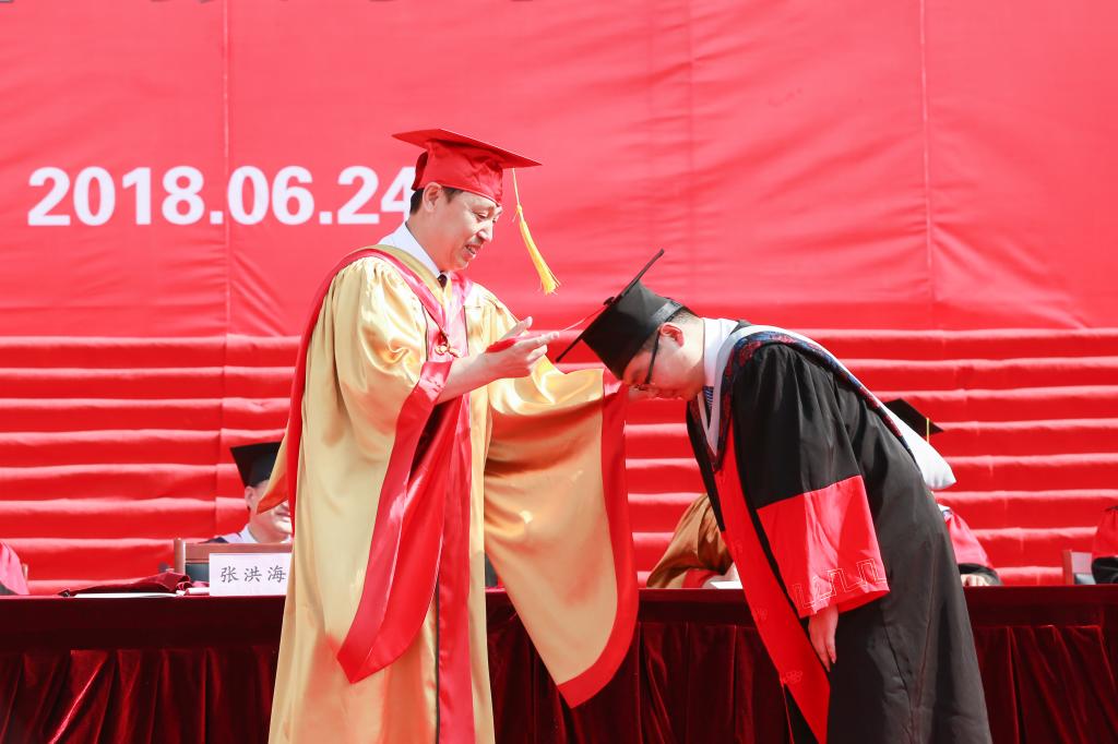 校长张洪海为毕业生拨穗正冠