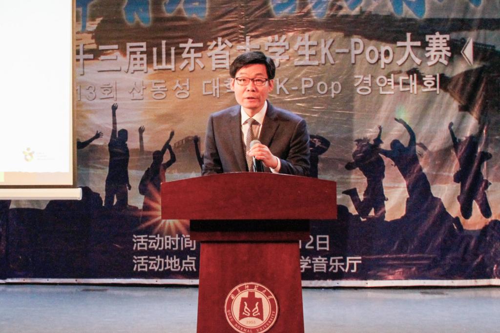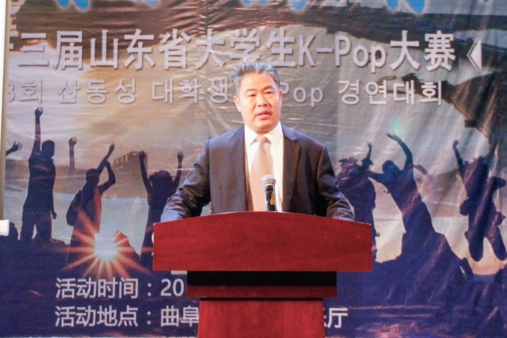 崔基元在致辞中向我校为承办此次大赛所作的付出表示衷心感谢,他表示山东省大学生韩语歌曲大赛为广大青年学子提供了一个加深理解韩国文化的机会,具有重要意义。