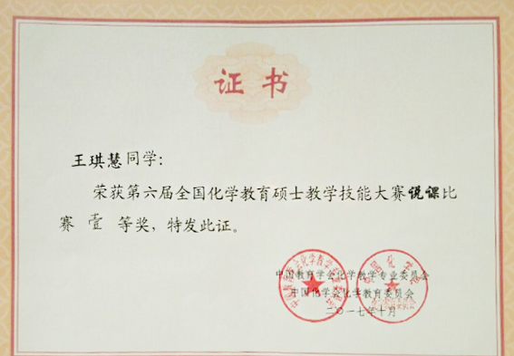 我校在全国化学教育硕士教学技能大赛中获特等奖