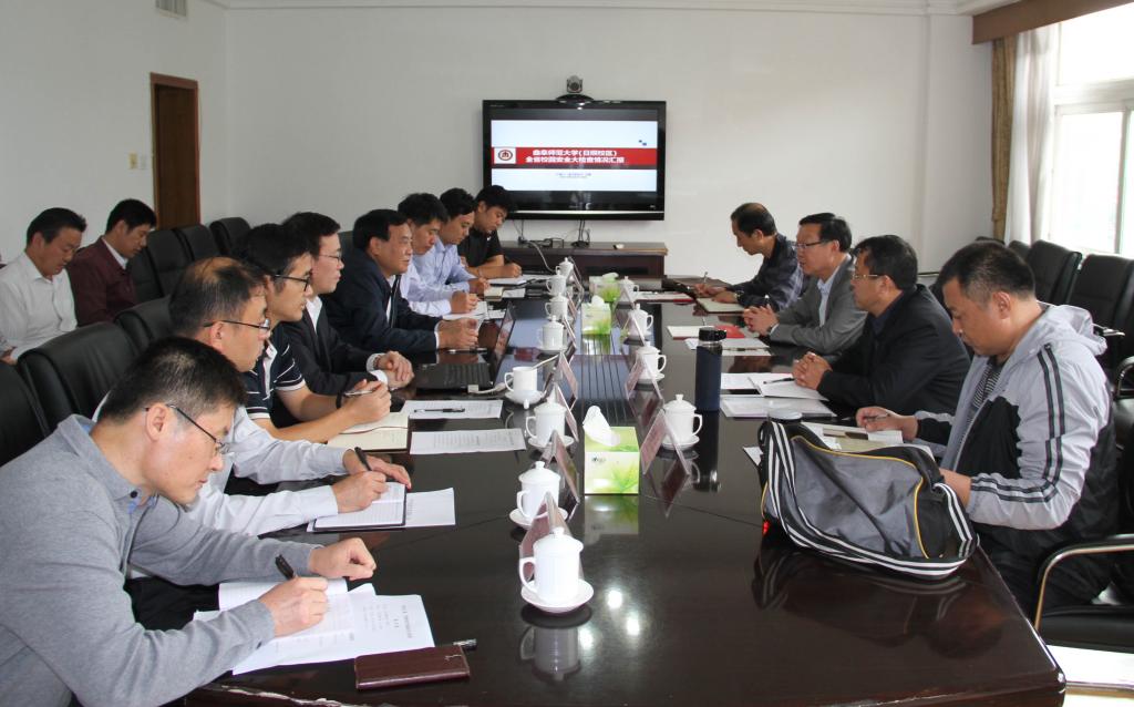 保卫处处长王刚从校园安全责任体系,师生安全教育,警校合作共建,校舍、消防、交通、食品、实验室及特种设备、校园及周边环境安全等几个方面,对学校的安全保卫进行了详细汇报。