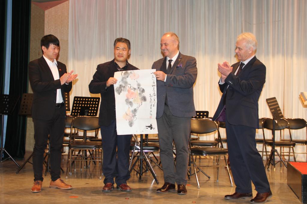 3月14日晚,中国与白俄罗斯文化交流之曲师大音乐学院民乐专场音乐会在日照校区举办, 副校长扈庆学出席活动并会见了国际人文欧亚学会名誉院士、白俄罗斯国家交响乐指挥瓦切斯拉夫·巴勒诺夫斯基一行。