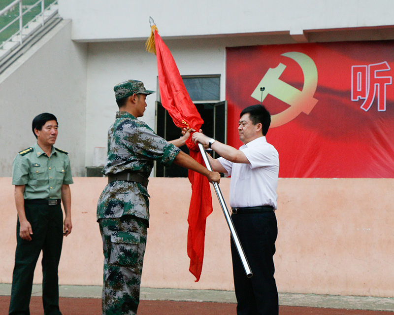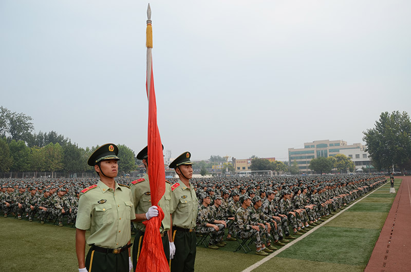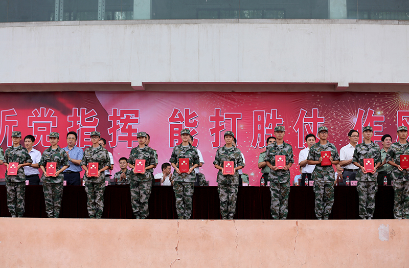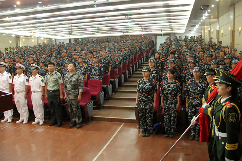 动员大会上,副校长张洪海宣读了军训团组成人员名单,武装部部长、军训团团长杨永明公布了军事课教学实施意见并宣读了营连机构安排,团委副书记、军训团政治工作部主任孔轶众宣读了政训工作意见。在主席台就坐的领导为军训教官颁发了聘书,教官代表和新生代表分别做了发言。