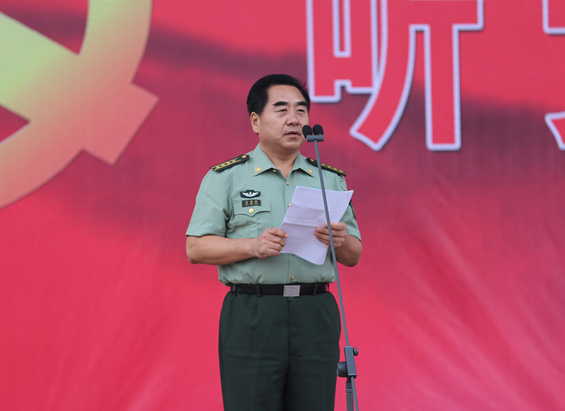 山东军区陆军预备役师参谋长翟英峰、中国人民解放军某部日照营副营长李晓波分别代表承训部队讲话,对全体承训官兵和全体参训新生提出了希望和要求,希望参训新生能够通过军训掌握军事技能,陶冶爱国情操,磨炼意志品质,认真上好大学生活第一课。