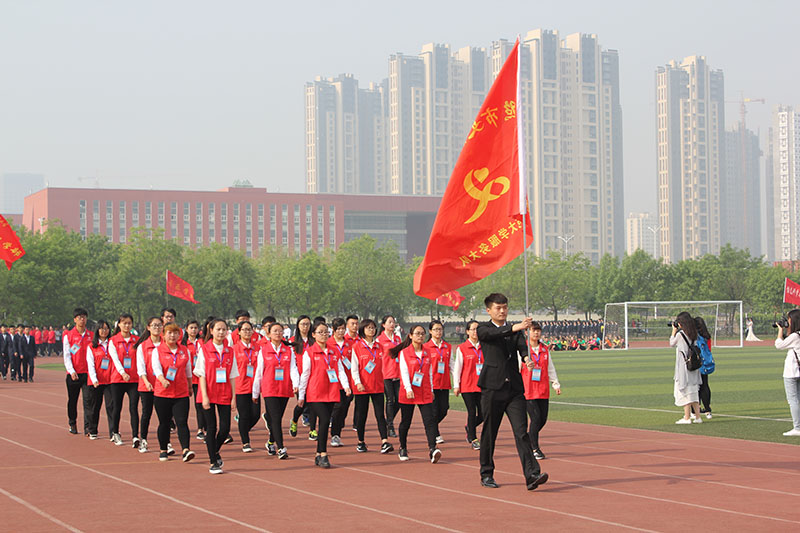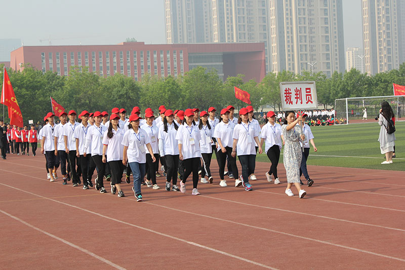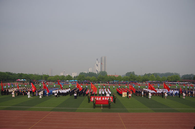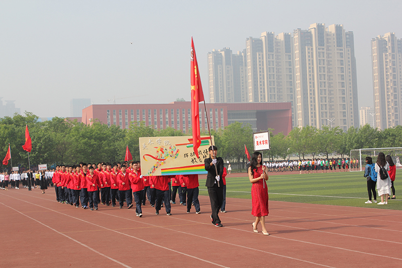 各学院方队入场后,升旗仪式开始。伴随着雄浑的国歌,五星红旗在师生的注目礼下徐徐升起。荆兆勋致开幕词,首先他对本次运动会的召开表示热烈祝贺,并向大会组委会及全体运动员、裁判员致以衷心的感谢。他指出,体育工作是学校教育事业的重要组成部分,是大学生健康成长、全面发展的保障。今年是我校十三五规划的开局之年,正是深入改革争创一流的关键时期。我校积极改建体育设施,丰富体育活动形式,课内与课外相结合,争取不断完善体育工作体系。他指出,各院学子接受检阅的同时,也是对他们良好精神风貌的展示,希望广大师生以此次运动会为契机,追求更高、更快、更强的目标,形成“崇尚运动,热爱体育,关注健康,全员参与”的良好氛围,提高健康意识,加上体育锻炼,为学校发展新目标做出积极贡献。随后,裁判员代表和运动员代表庄严宣誓,严守竞赛规则,维护体育道德,确保比赛的公平公正。