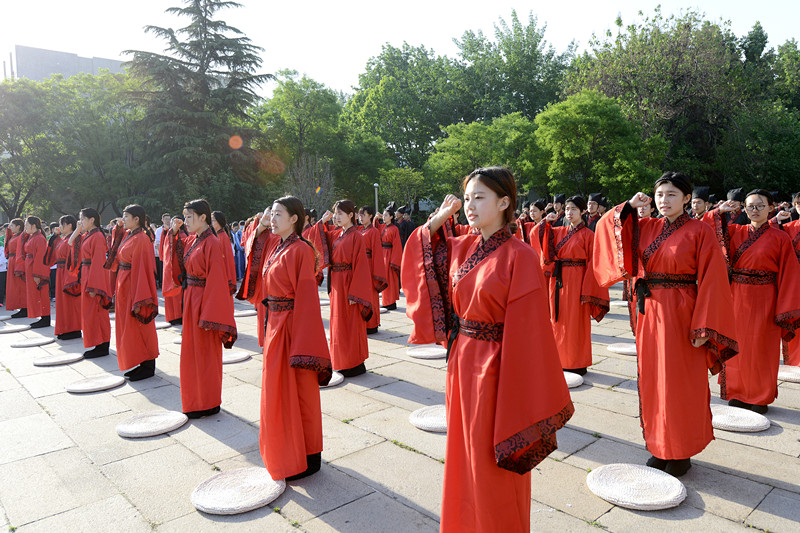 随后,来自两校区的159名学生共同迎来了属于自己的“成人礼”,校领导为学子“加冠”“加笄”,并为他们颁发了成人纪念册。校领导引用习近平总书记的讲话“人的一生只有一次青春。现在,青春是用来奋斗的;将来,青春是用来回忆的”寄语广大青年学子,希望同学们树立远大理想,做有志青年;希望同学们矢志拼搏奋斗,做有才青年;希望同学们自觉担当使命,做有为青年。冠笄礼学子集体宣誓,决心为中华民族的伟大复兴奉献青春、贡献力量。