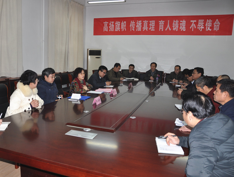1月6日上午,由省委高校工委副书记黄琦、省委宣传部理论处副处长张汝金、省委高校工委宣教处副处长陈成标组成的山东高校“重点马克思主义学院”建设考察组莅临我校,对我校申报的“省重点马克思主义学院”进行实地考察。学校党委书记荆兆勋、校长戚万学,学校办公室、宣传部、教务处、社科处、研究生处、马克思主义学院等单位负责人参加汇报会。