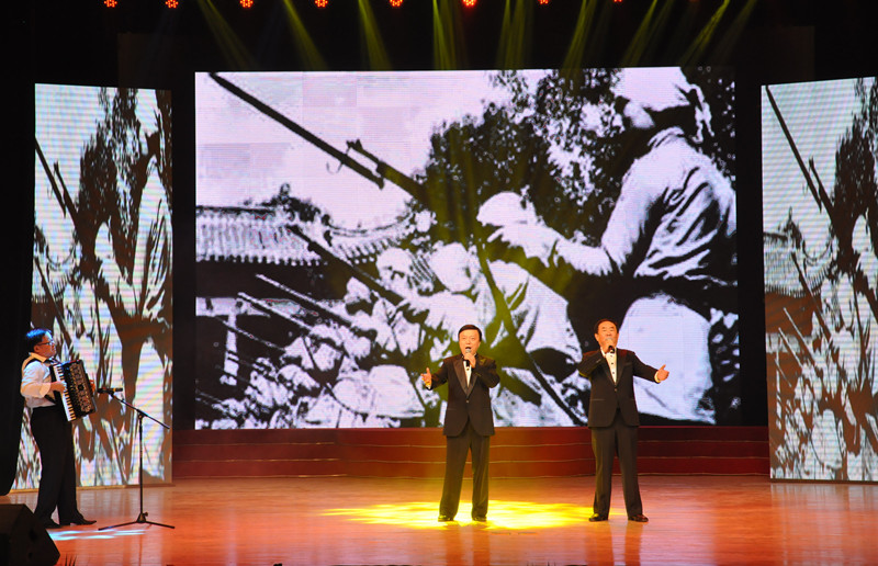 在恢宏的音乐声中,老年合唱团率先登台,合唱校歌《犁牛之子歌》和《中国之梦》,使观众精神为之一振;由退休教师董文华和文学院在职教师李钧带来的配乐诗朗诵《创业颂》完美地再现了一代又一代教师筑梦育人的奋斗史;京剧联唱《没有共产党就没有新中国》表现了曲园人对党和祖国的诚挚爱意;在舞台两侧投射出的水墨画的映衬下,由老年太极队表演的太极拳《太极生辉庆华诞》引领观众走入诗情画意的世界;男生二重唱《游击队歌》、《阿拉木汗》将现场气氛推向高潮;青松不老、风鹤长鸣,时装表演《多彩曲园》将老教师们积极向上,与时俱进的年轻心态诠释到了极致;书法和京剧都是中华民族的高端艺术、传统文化的国粹精华,书画京剧《西风烈》使得二者能够联袂同台呈现,京剧唱腔更加声情并茂,书法艺术更加气韵生动;广场舞《洗衣欢歌》、《中国喜事》两种不同风格的舞曲串烧,使现场充满喜庆气氛;老年舞蹈队在交谊舞《友谊地久天长》的欢快节奏中变换着脚步,博得观众的一阵阵掌声;演出在歌曲《共筑中国梦》中落下帷幕,大气浑厚的旋律、真挚激扬的情感唱出了曲园人共筑曲园梦,杏坛飞彩虹;共筑中国梦,昂首再启程的的决心和壮志。