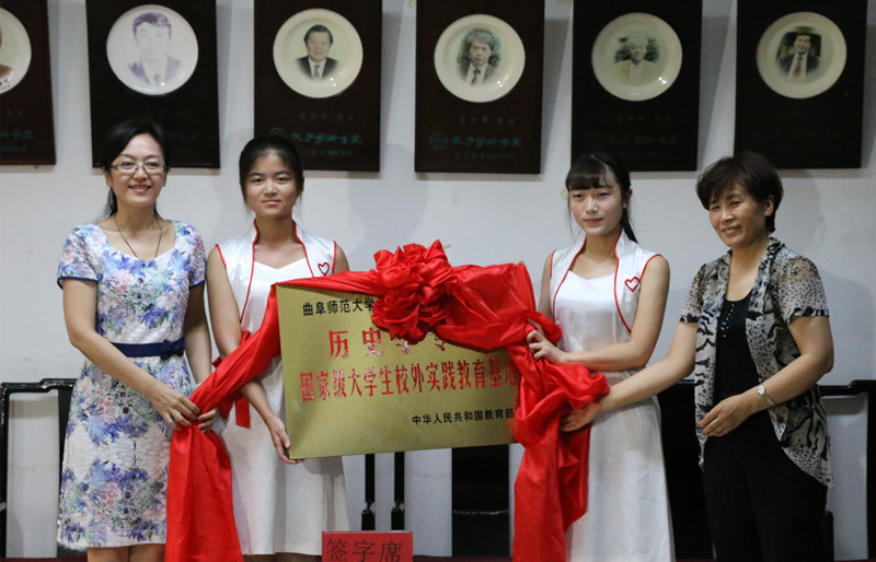 康淑敏和褚福梅为我校与曲阜市文物管理委员会合作共建的历史学专业国家级大学生校外实践教育基地揭牌;历史文化学院院长成积春和曲阜市文管会副主任李玉春分别受我校和曲阜市委托,签署“XK在线-曲阜市文物局文物普查合作协议”。