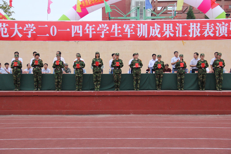 大会宣读了军训先进单位和个人名单,在主席台就坐的领导为获奖代表颁发了奖牌和证书。